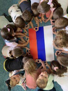 Заједно са својим васпитачима, малишани су, примерено узрасту, цртали, бојили, правили заставе и причали о значају националног идентитета.